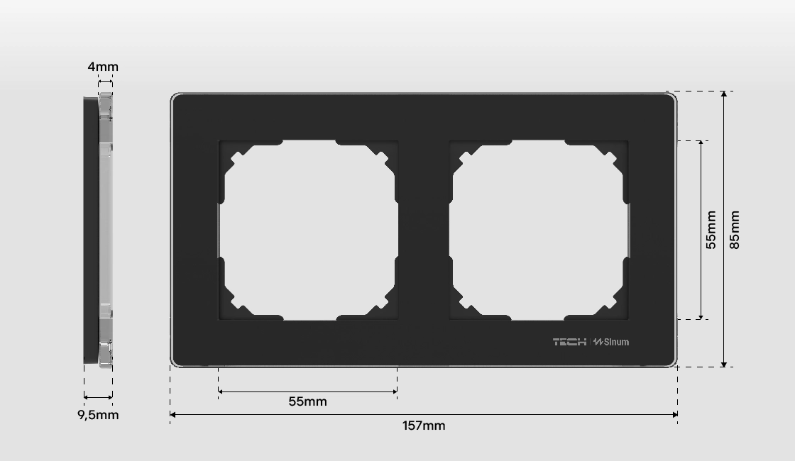 Размеры рамыНаши стеклянные рамки сочетают в себе элегантный внешний вид и идеальную посадку на выключатели благодаря точно подобранным размерам.