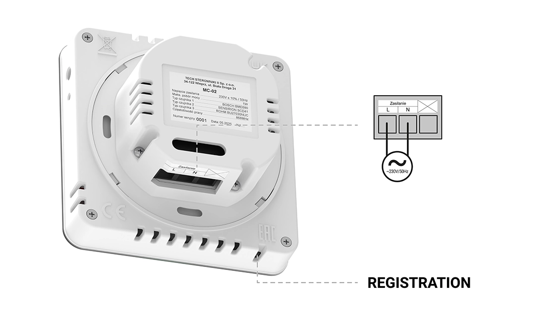 Связь и регистрацияРегистрация – кнопка, расположенная на задней панели устройства, используется для регистрации контроллера в системе. Нажатие кнопки запускает процесс сопряжения с блоком управления. После успешного завершения регистрации на экране контроллера появится сообщение.