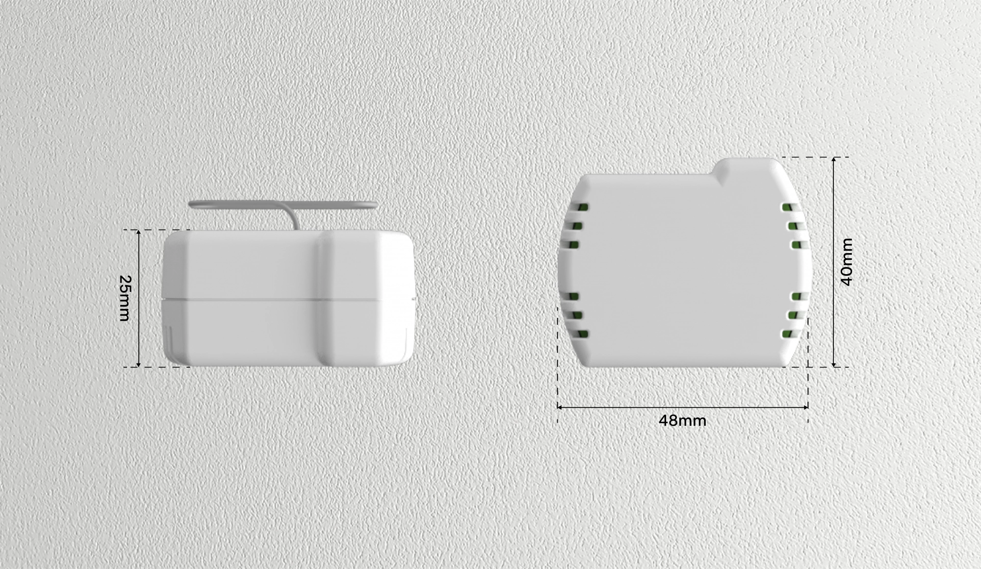 Размеры устройстваМодуль PPS-01 представляет собой небольшое устройство размером 40x48x25 мм, что позволяет легко установить его в стандартную электротехническую коробку диаметром 60 мм. Компактные размеры делают модуль незаметным и не портят внешний вид интерьера, оставаясь полностью незаметным после установки. Подробности размеров: