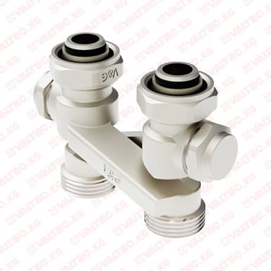 Применяется в качестве переходника с внутренней резьбой 1/2” на соединение типа 3/4" «евроконус». Чаще всего используется при монтаже панельных радиаторов.
