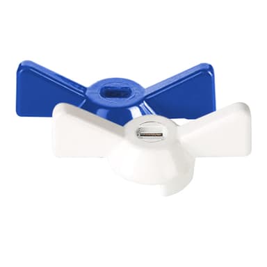 В ассортименте VALTEC.KG имеются удобные аксессуары для шаровых кранов. Например, ручка типа "бабочка" из алюминиевого сплава с покраской синего цвета позволит удобно маркировать имеющиеся у вас инженерные системы.