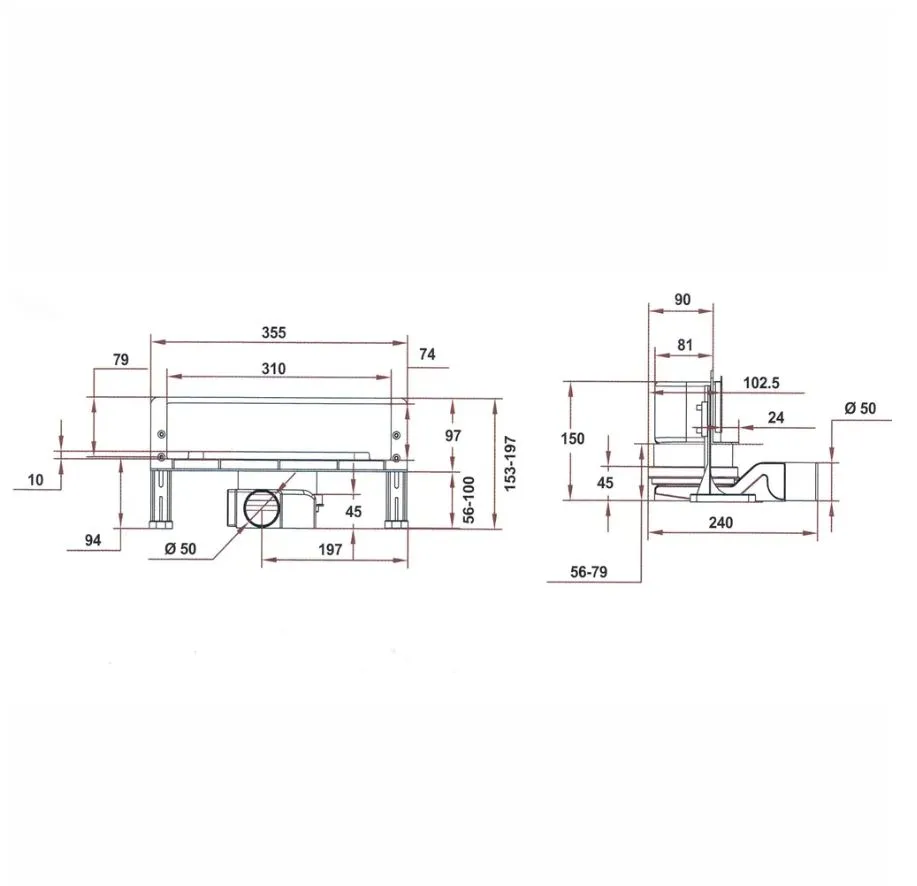 - Размер ниши желоба 74 х 310 мм;